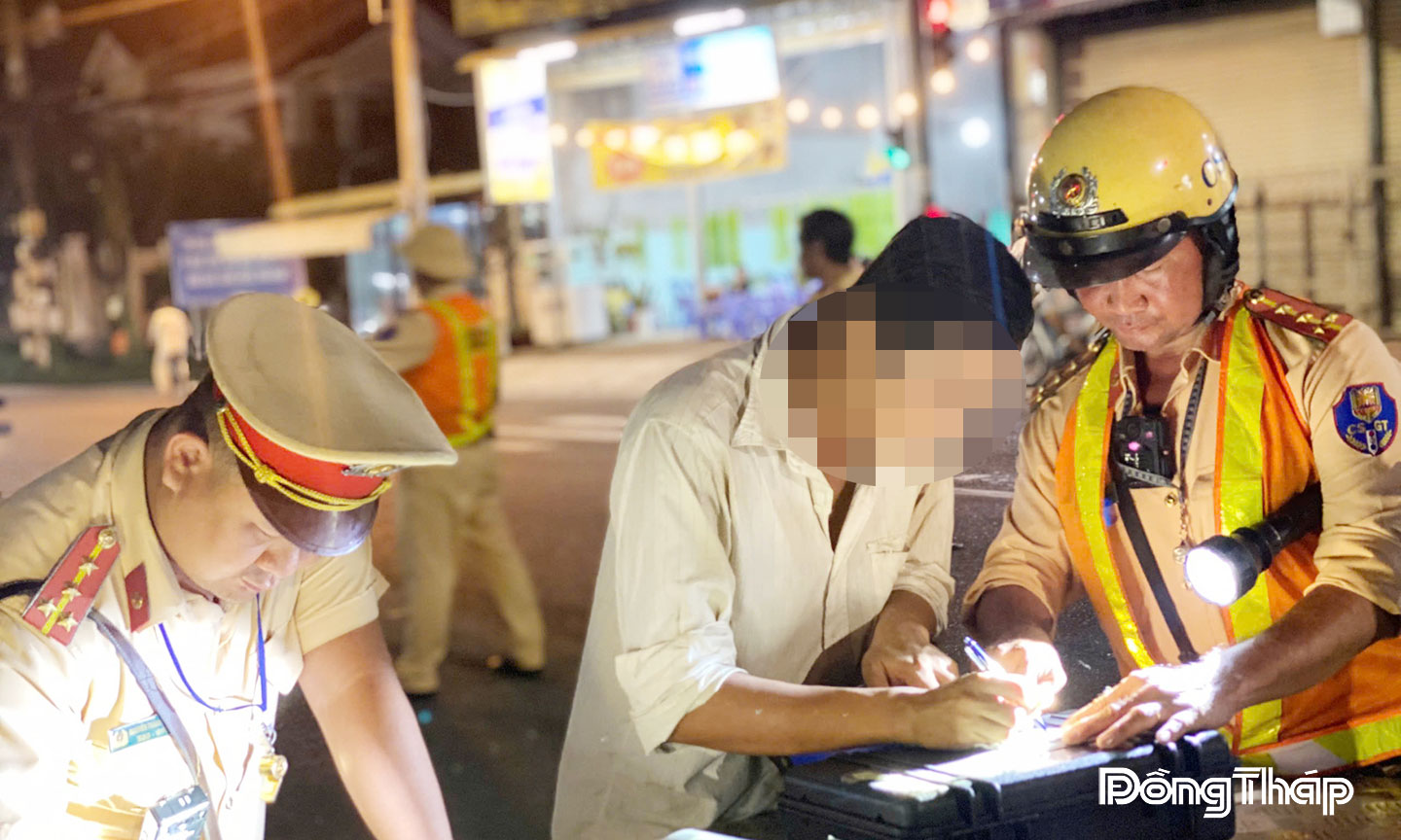 | Cảnh sát giao thông xử lý các trường hợp vi phạm nồng độ cồn. Ảnh: TUẤN LÂM |