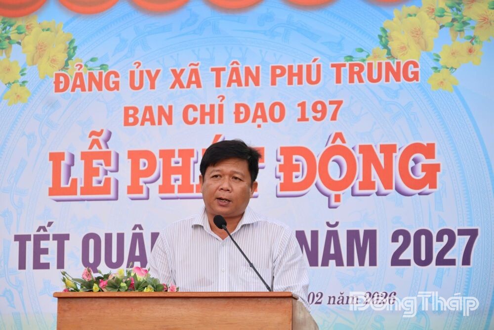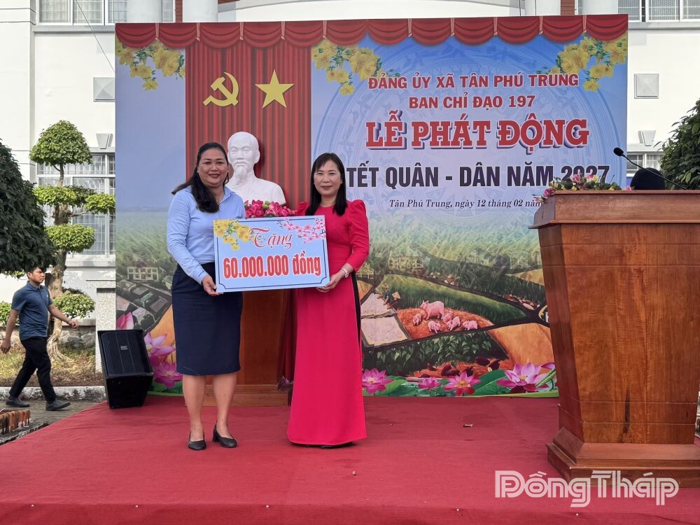 (ĐTO) Ngày 12-2, Ban Chỉ đạo, điều hành chương trình “Tết Quân - Dân” xã Tân Phú Trung tổ chức lễ phát động “Tết Quân - Dân” năm 2027 trên địa bàn xã. Đến dự có đại diện Lữ đoàn Công binh 25; đồng chí Võ Ngọc Thành, Bí thư Đảng uỷ, Chủ tịch HĐND xã; đồng chí Lê Bình An, Phó Bí thư, Chủ tịch UBND xã; đồng chí Mai Thị Luyến, Ủy viên Ban Thượng vụ Đảng uỷ, Chủ tịch Ủy ban MTTQ Việt Nam xã, cùng lãnh đạo các ban, ngành xã.