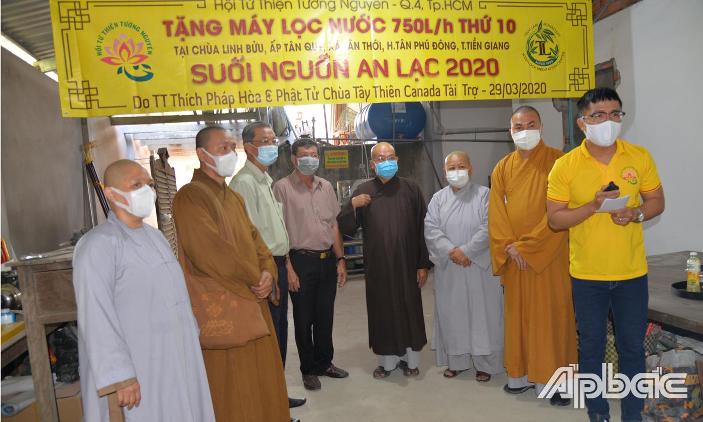 (ABO) Ngày 29-3, thông qua Ủy ban Mặt trận Tổ quốc Việt Nam tỉnh Tiền Giang, Hội Từ thiện Tường Nguyên (quận 4, TP. Hồ Chí Minh) đã trao tặng 6 máy lọc nước mặn thành nước ngọt và 1.200 can đựng nước cho huyện Tân Phú Đông.