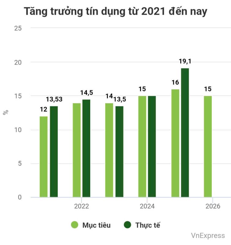 Ngân hàng Nhà nước dự kiến tăng trưởng tín dụng toàn hệ thống năm nay khoảng 15%, thấp hơn mục tiêu (16%) lẫn kết quả thực tế năm ngoái (19,1%).