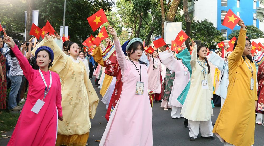 “Mỗi vạt áo các bạn mặc, mỗi câu chuyện văn hóa các bạn kể sẽ là một viên gạch góp phần xây dựng nên bức tranh văn hóa rực rỡ, nhân văn”, PGS-TS Lê Thị Ngọc Điệp, Bí thư Đảng ủy Trường Đại học Khoa học Xã hội và Nhân văn - Đại học Quốc gia TPHCM, chia sẻ trong sự kiện Ngày hội Việt phục “Tóc xanh vạt áo” lần thứ 6 - năm 2026 vừa diễn ra tại Nhà Văn hóa Sinh viên TPHCM.