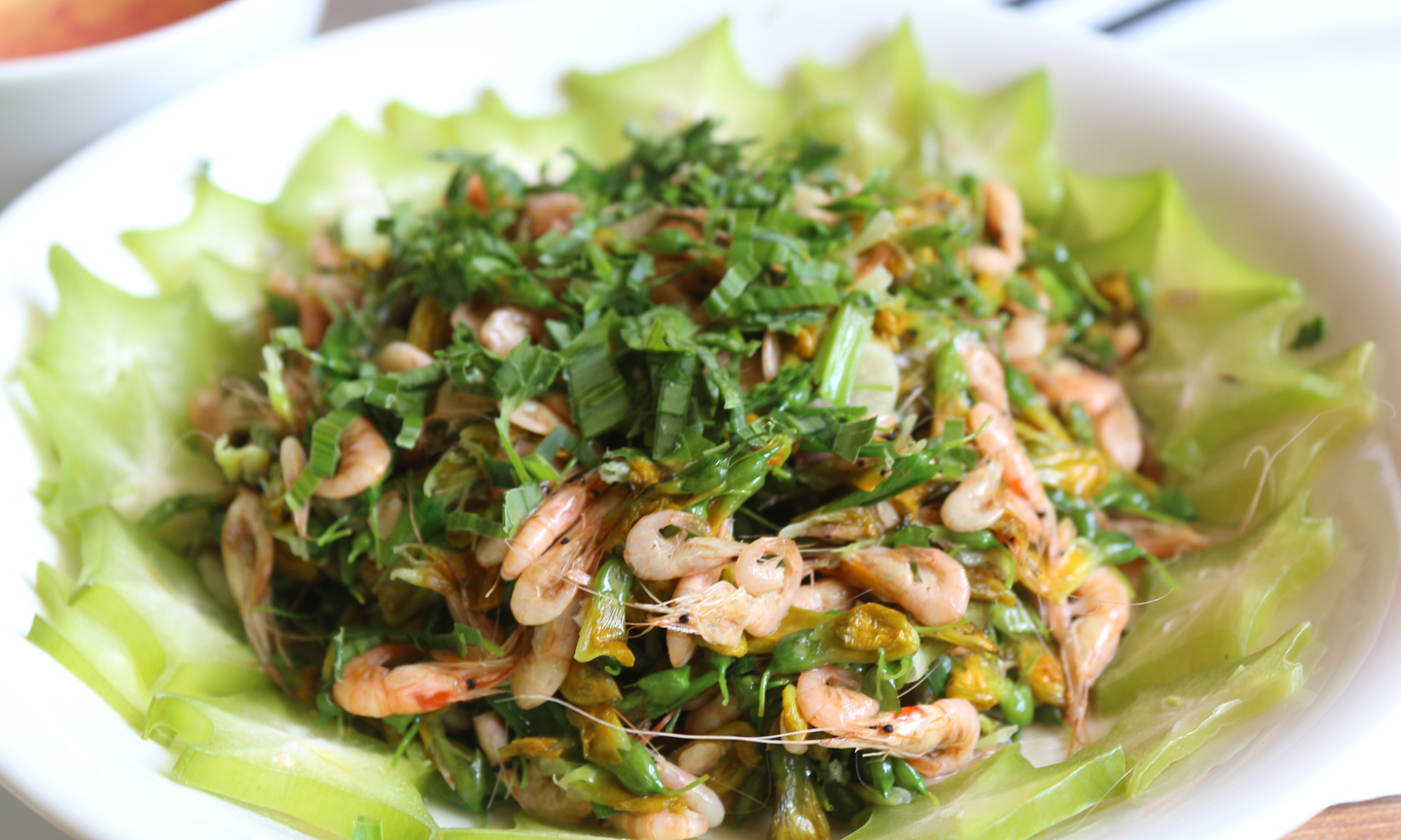 Điểm nhấn của món này là khi xào bỏ chút lá gừng tươi để cho một mùi thơm đặc biệt, thơm khắp cả nhà. Dùng món ăn này thì không thể thiếu rau sống, khế, chuối chát, đậu rồng và nước mắm chua ngọt, tất cả tạo nên một món ăn vừa ngon, ngọt, đậm đà và ít ngán.