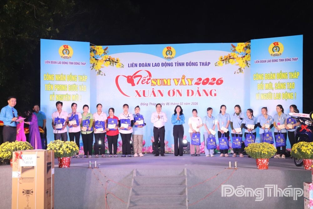(ĐTO) Tối 5-2, tại Khu Công nghiệp Tân Hương, Liên đoàn Lao động tỉnh Đồng Tháp phối hợp với các đơn vị liên quan tổ chức Chương trình “Tết Sum vầy – Xuân ơn Đảng” năm 2026, thu hút đông đảo đoàn viên, người lao động đang làm việc tại các doanh nghiệp trong khu công nghiệp tham dự.