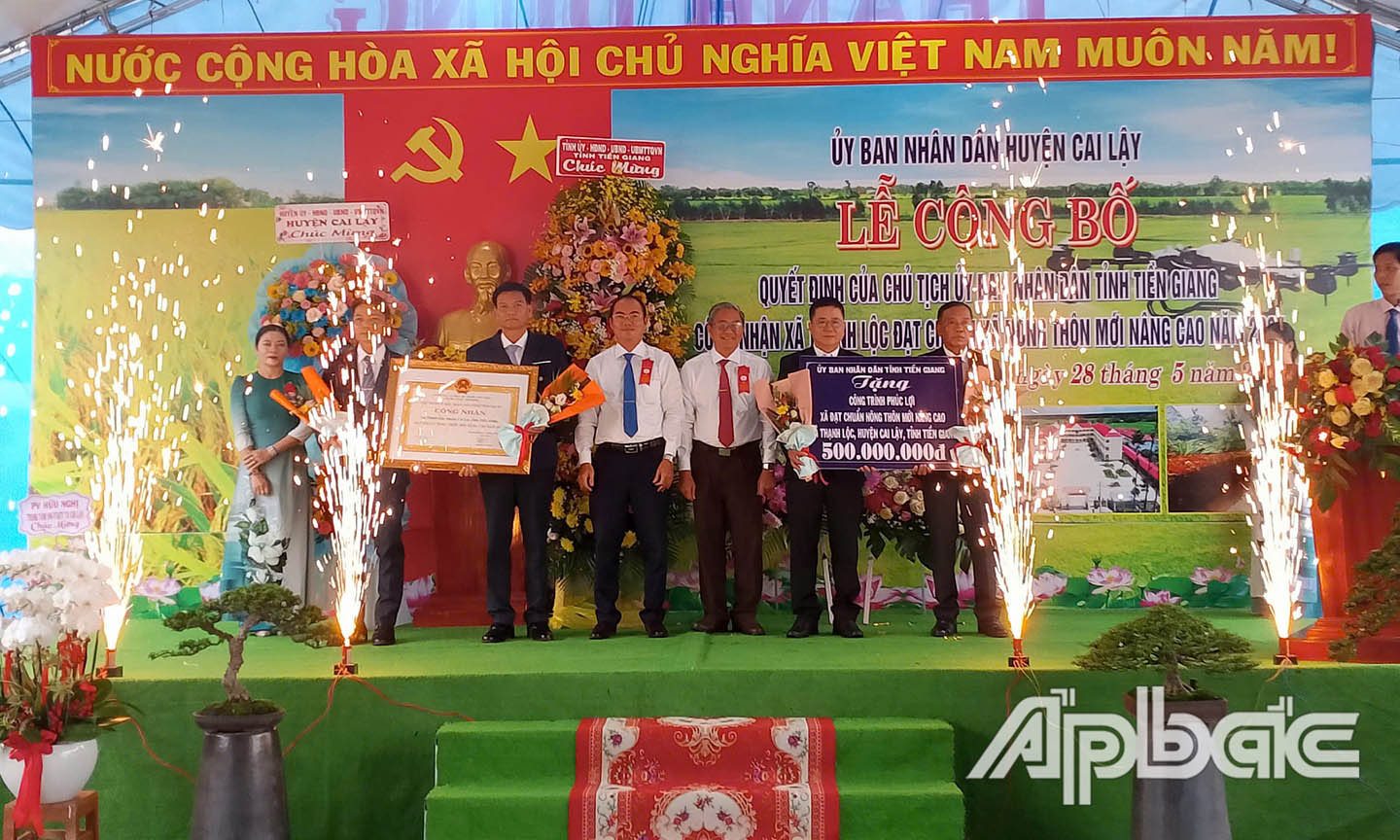 (ABO) Ngày 28-5, UBND huyện Cai Lậy (tỉnh Tiền Giang) tổ chức Lễ công bố Quyết định của Chủ tịch UBND tỉnh Tiền Giang công nhận xã Thạnh Lộc đạt chuẩn nông thôn mới (NTM) nâng cao.