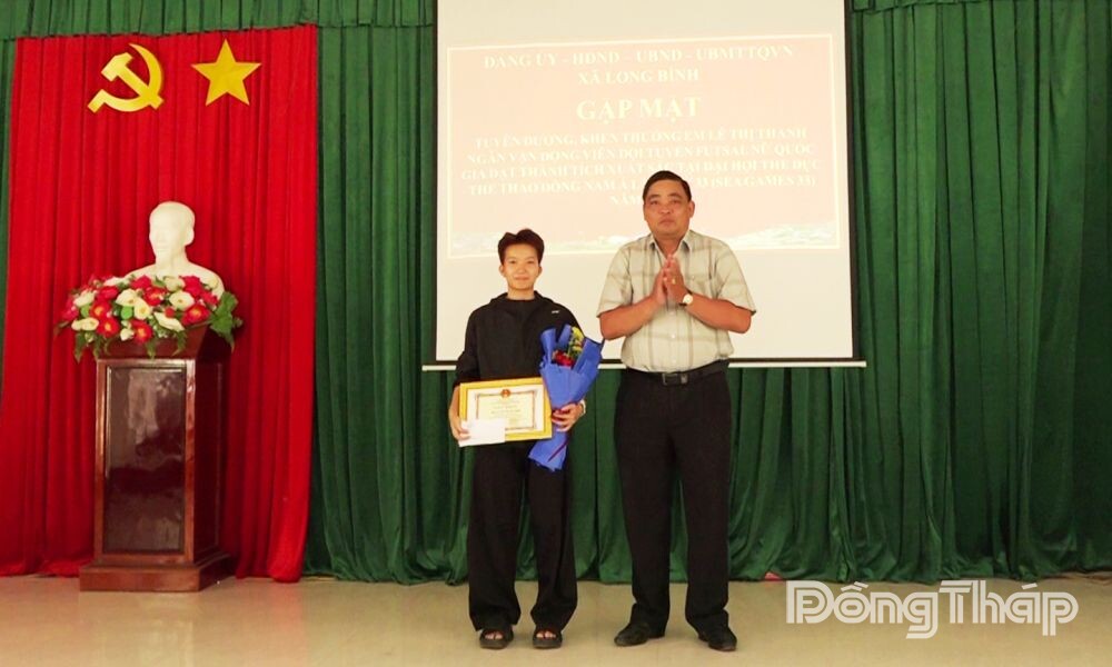 Vừa qua, tại Lễ khen thưởng đột xuất do UBND xã Long Bình tổ chức, lãnh đạo xã đã trao Giấy khen và phần thưởng của UBND xã tặng Thanh Ngân vì đã có thành tích xuất sắc trong thi đấu tại SEA Games 33.