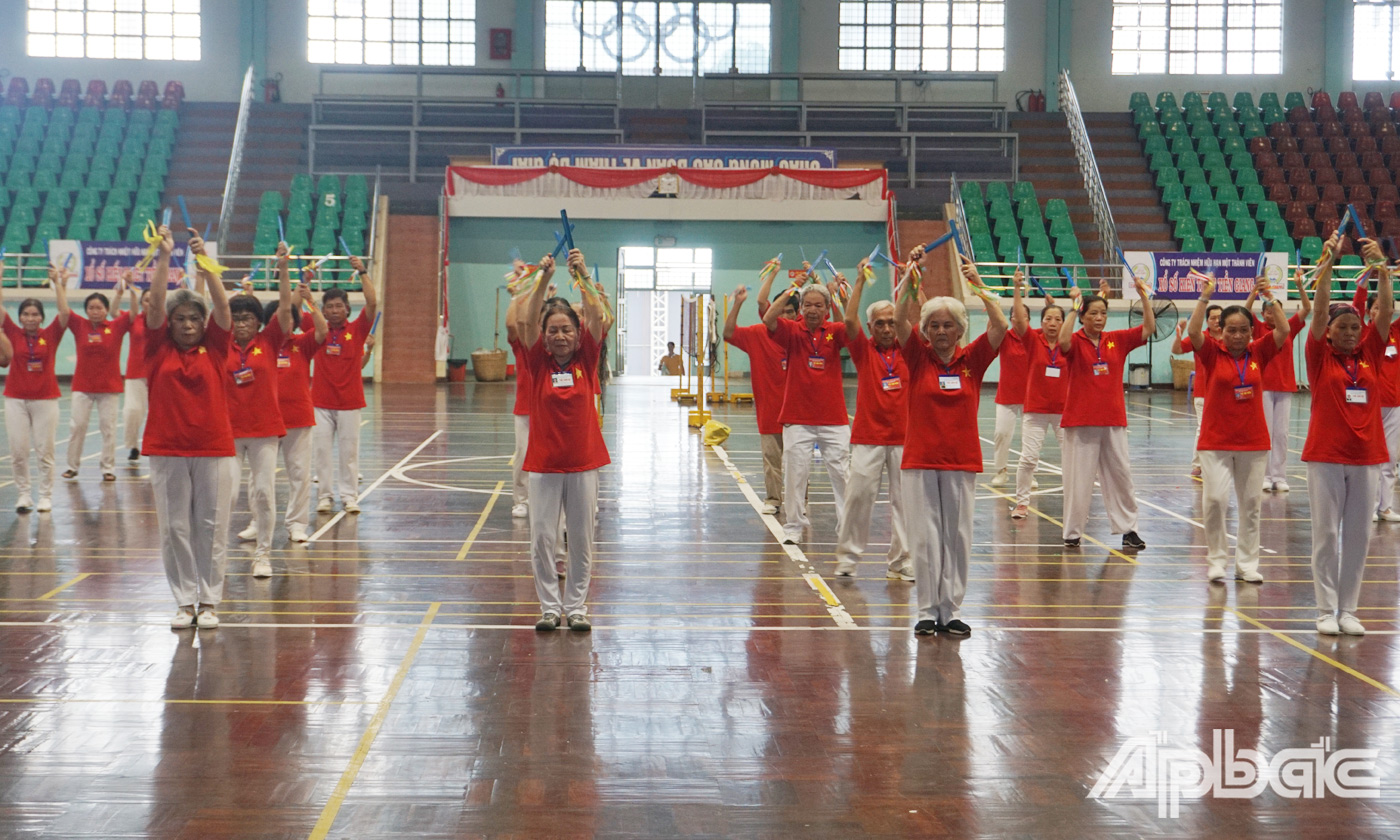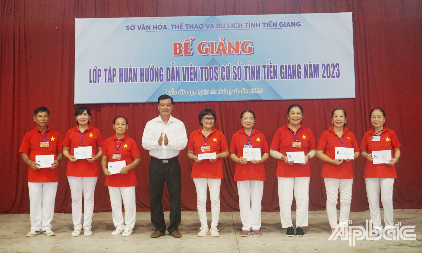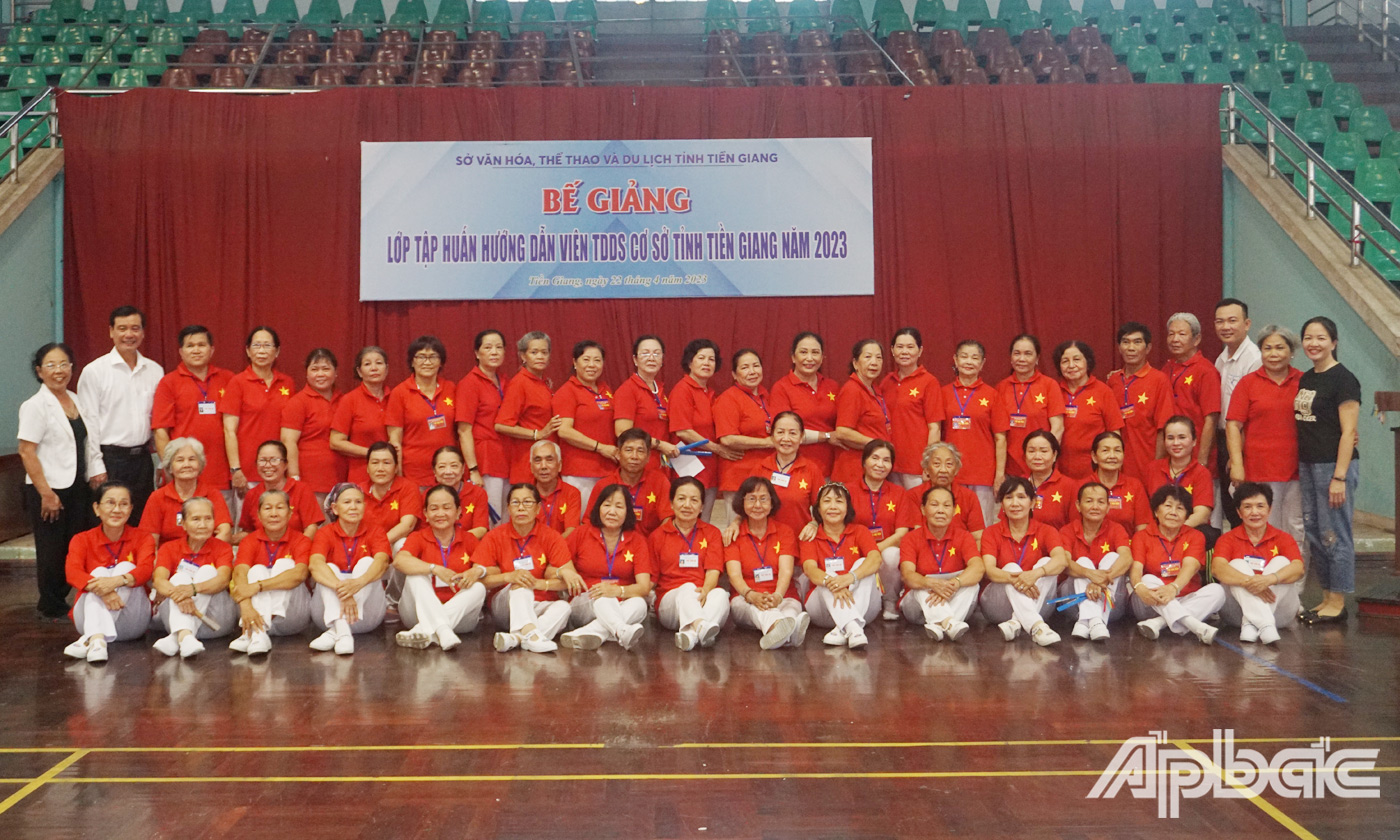 (ABO) Chiều 22-4, Sở Văn hóa, Thể thao và Du lịch tỉnh Tiền Giang tổ chức Bế giảng Lớp tập huấn thể dục dưỡng sinh cho cán bộ, hướng dẫn viên người cao tuổi tỉnh Tiền Giang năm 2023.