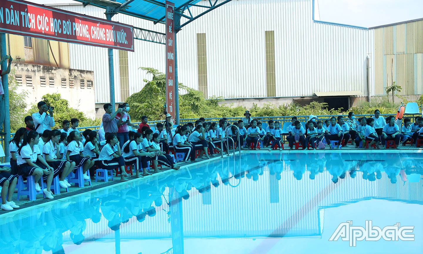 Chương trình do Trung tâm Văn hóa, Thể thao và Du lịch phối hợp Phòng Giáo dục và Đào tạo TP. Mỹ Tho, Trường Khuyết tật Nhân ái (TP. Mỹ Tho) tổ chức thực hiện với sự hỗ trợ chi phí từ Dự án Bơi cho trẻ khuyết tật của Tổ chức AWSOM (Australian Water Safety On The Mekong) với tổng kinh phí 116 triệu đồng.