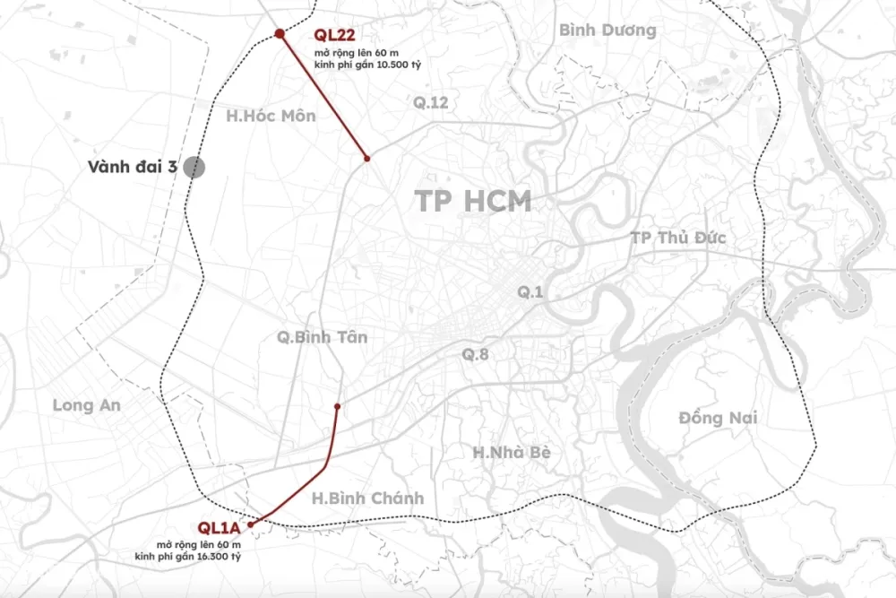 Cùng với dự án này, thành phố cũng đẩy nhanh ba công trình nâng cấp quốc lộ 22, 13 và đường trục Bắc - Nam theo hình thức BOT.