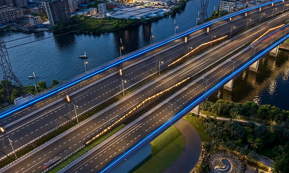 Đoạn quốc lộ 1 từ TP HCM đi các tỉnh miền Tây 6 làn xe sẽ mở rộng lên 10 - 12 làn, cầu Bình Điền và các nút giao thiết kế hiện đại tạo điểm nhấn cho khu vực.