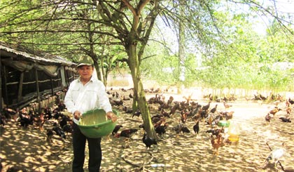 Từ những lần thất bại đó, ông quyết định chuyển sang chăn nuôi. Ông đi nhiều nơi để tham khảo các mô hình chăn nuôi khác nhau và nhận ra mô hình nuôi gà thả vườn với giống gà nòi Bến Tre cho hiệu quả kinh tế cao.