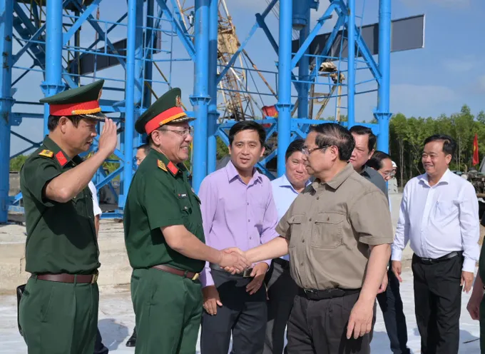 Thủ tướng Phạm Minh Chính thị sát tuyến đường bộ cao tốc Cà Mau - Đất Mũi, tuyến giao thông ra đảo Hòn Khoai và Cảng tổng hợp lưỡng dụng Hòn Khoai từ trực thăng. Sau đó, trực tiếp kiểm tra công tác thi công tại công trường, làm việc với lãnh đạo tỉnh Cà Mau, chủ đầu tư, đơn vị thi công.