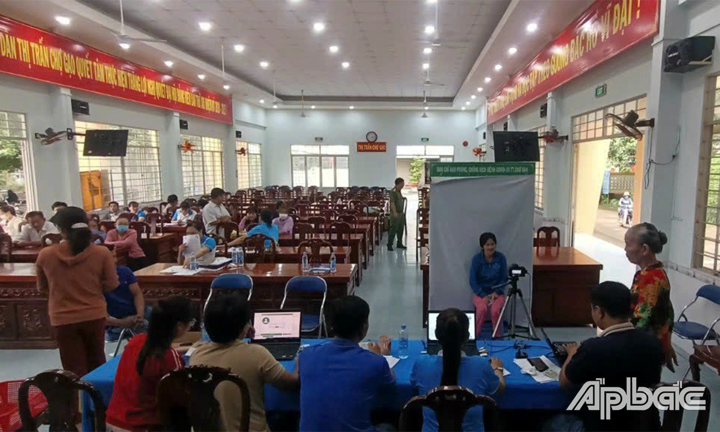 Một số hình ảnh các đội hình thực hiện Chiến dịch đăng ký VNeID triển khai hỗ trợ người dân cài đặt, đăng ký, kích hoạt tài khoản định danh điện tử VNeID trên địa bàn huyện Chợ Gạo: