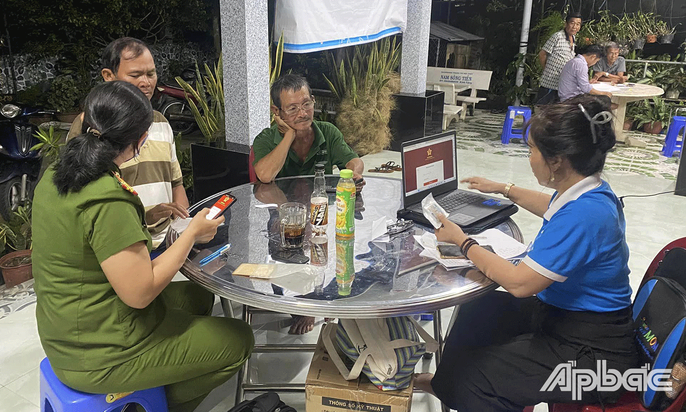Bất kể ngày, đêm, ngày lễ, thứ bảy, chủ nhật các đội hình thực hiện Chiến dịch đăng ký VNeID chia đều các địa bàn trong huyện Chợ Gạo hỗ trợ người dân cài đặt, đăng ký, kích hoạt tài khoản định danh điện tử VNeID.