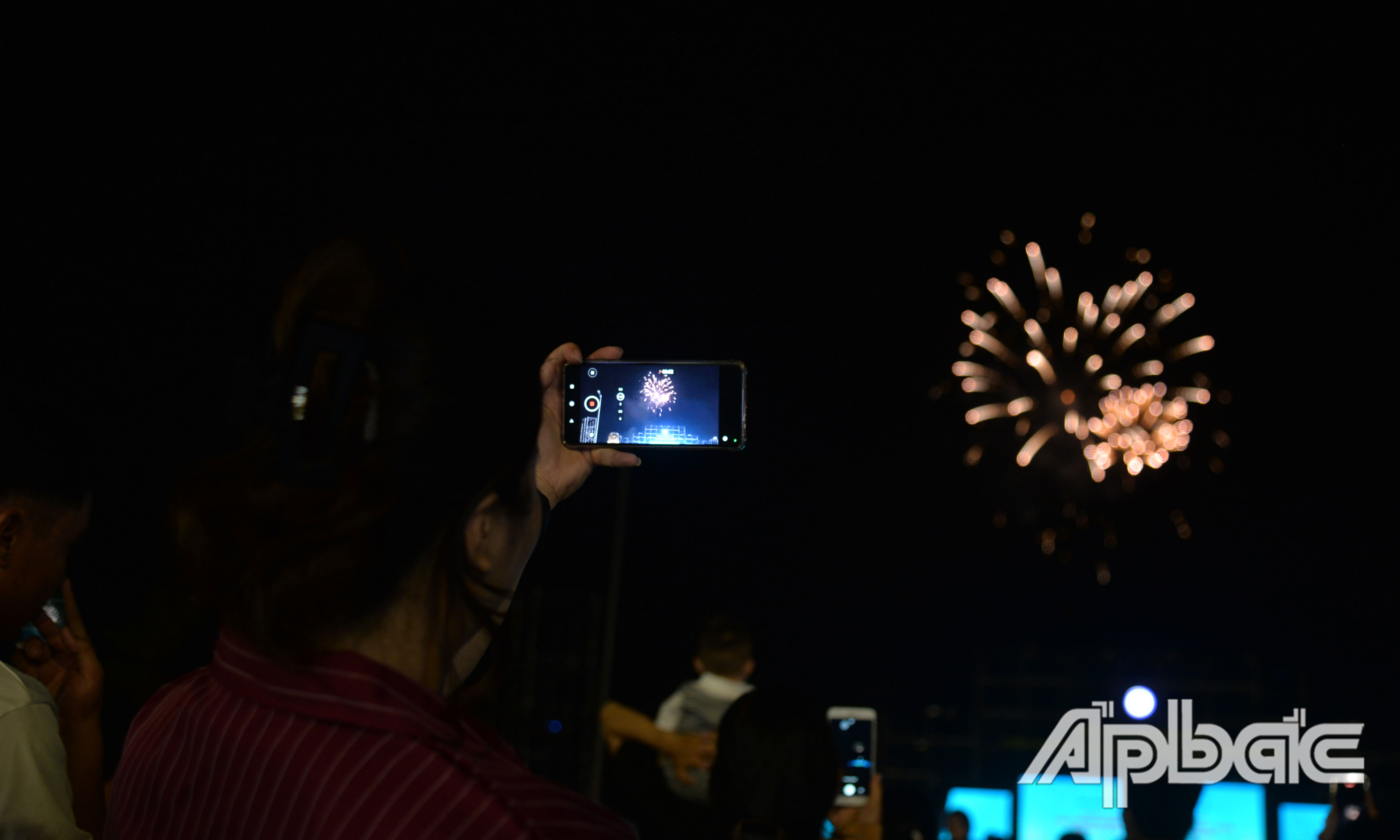 | Người dân hào hứng xem trình diễn pháo hoa. |