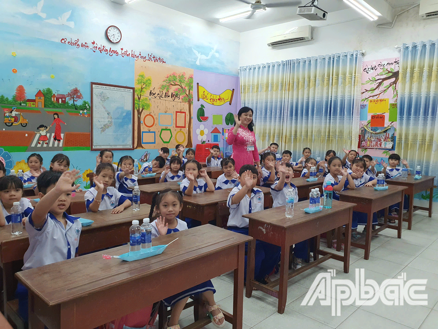 Ghi nhận tại Trường Tiểu học Thủ Khoa Huân (TP. Mỹ Tho), trong ngày đầu nhập học, học sinh đến trường với tâm lý vui tươi, phấn khởi. Thầy Lê Văn Triêm, Hiệu trưởng nhà trường cho biết, trong ngày đầu tiên có 211/220 học sinh lớp 1 đã đến lớp, đạt tỷ lệ 95,9%. Các em đến trường trong tâm thế vui tươi, an toàn, bắt đầu hòa nhập tốt với bạn bè, thầy cô. Để đón học sinh nhập học, trường đã vệ sinh sạch sẽ các phòng học, nhà vệ sinh…