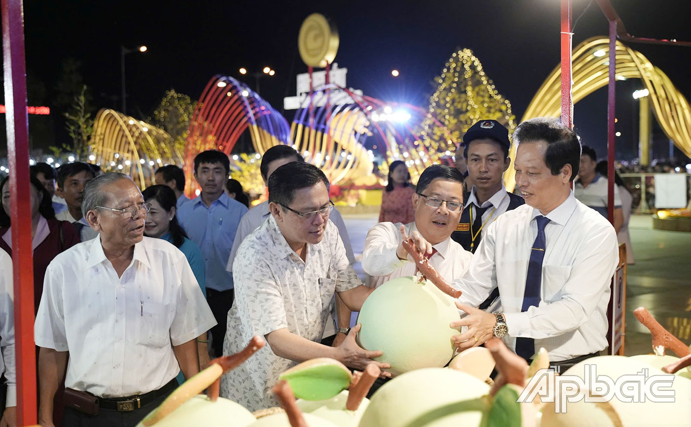 | Lãnh đạo tỉnh Tiền Giang tham quan tại Đường hoa Xuân Ất Tỵ 2025. |