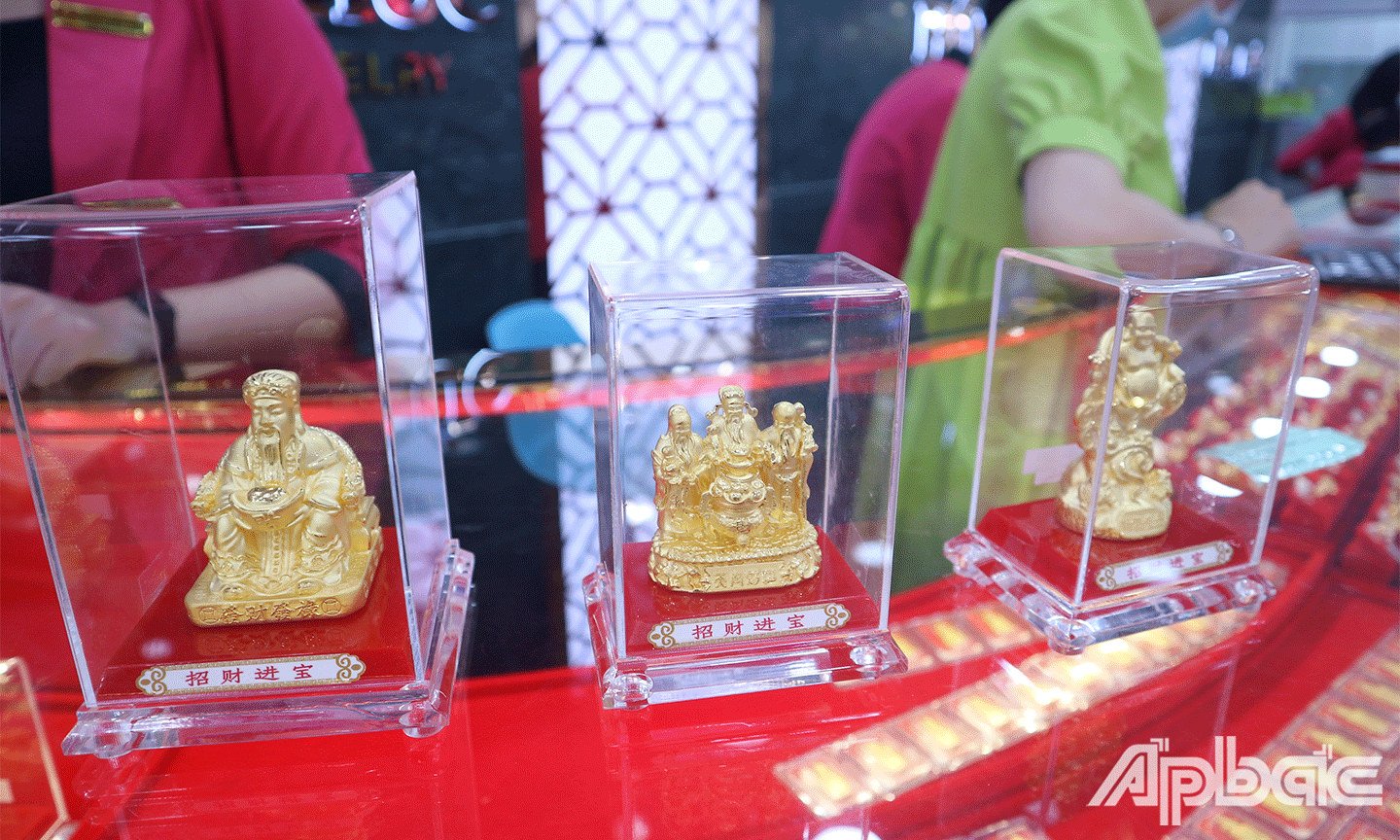 (ABO) Trong ngày vía Thần tài (mùng 10 tháng Giêng) người dân có thói quen mua vàng với hy vọng năm mới tài lộc và may mắn. Nắm bắt xu thế này, các cửa hàng kinh doanh vàng bạc trên địa bàn TP. Mỹ Tho đã chuẩn bị sẵn sàng nguồn hàng với mẫu mã, kiểu dáng đa dạng nhằm đáp ứng nhu cầu của khách.