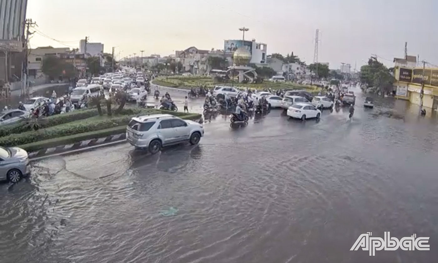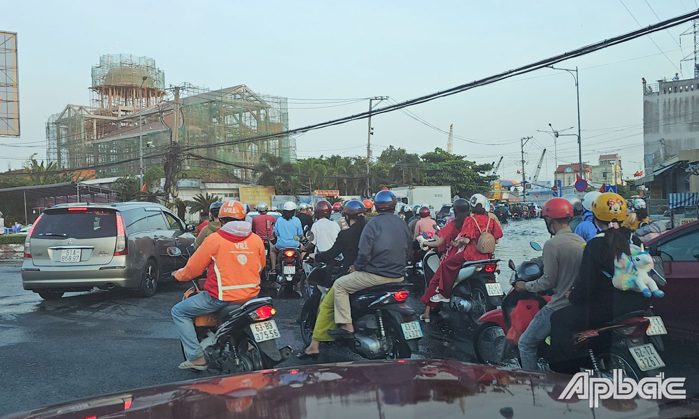 Tiền Giang: Nỗ lực điều tiết giao thông ngã ba Trung Lương do triều cường