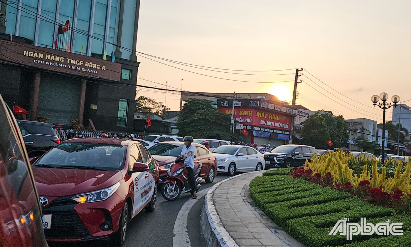 Theo ghi nhận của phóng viên, từ 16 giờ chiều ngày 10-2, trên Quốc lộ 1 khu vực xã Phước Thạnh (TP. Mỹ Tho) đến ngã ba Trung Lương và kéo dài đến cầu Bến Chùa (xã Long An, huyện Châu Thành, tỉnh Tiền Giang) đã xảy ra ùn ứ giao thông gần 1 km.