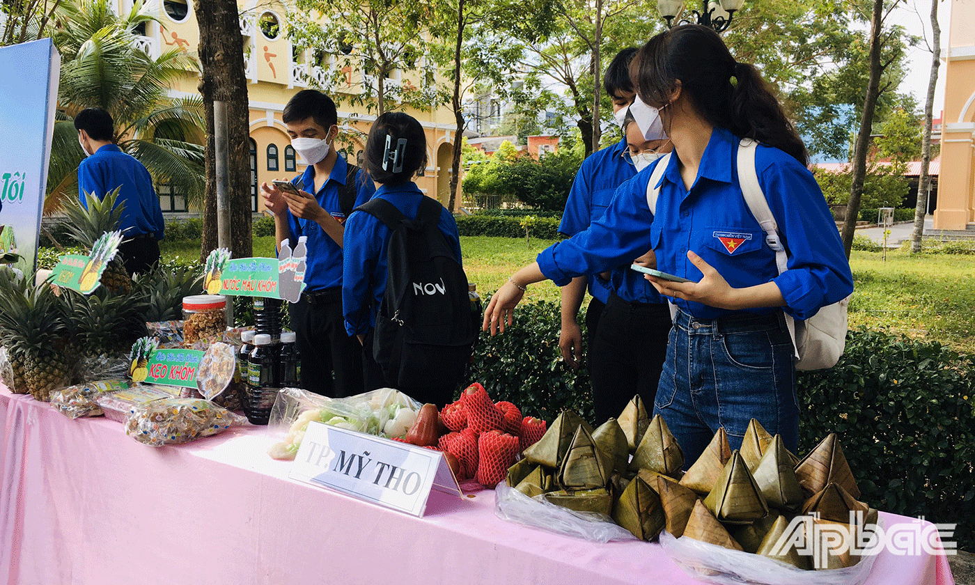 Đoàn viên, thanh niên các huyện, thị, thành tham gia trưng bày và giới thiệu sản phẩm sáng tạo, các sản phẩm là đặc sản địa phương, sản phẩm OCOP. |