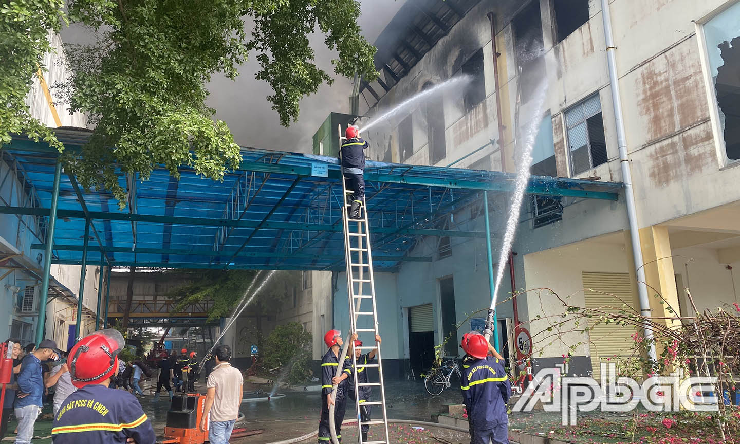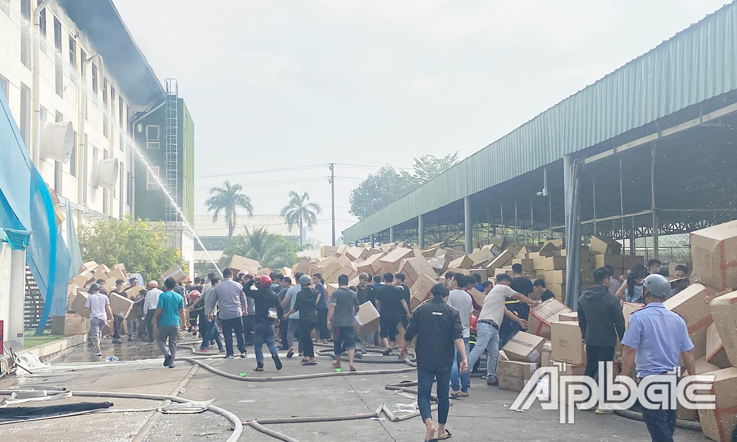 Theo thông tin ban đầu, đám cháy bắt nguồn từ kho nguyên liệu của Công ty TNHH Quảng Việt. Phòng Cảnh sát Phòng cháy chữa cháy và Cứu nạn cứu hộ (PCCC&CNCH) - Công an tỉnh Tiền Giang đã lập tức điều động nhiều xe chữa cháy cùng lực lượng đến hiện trường. Đồng thời, lực lượng PCCC&CNCH của Công an tỉnh Long An cũng đã nhanh chóng huy động phương tiện và cán bộ, chiến sĩ sang hỗ trợ.