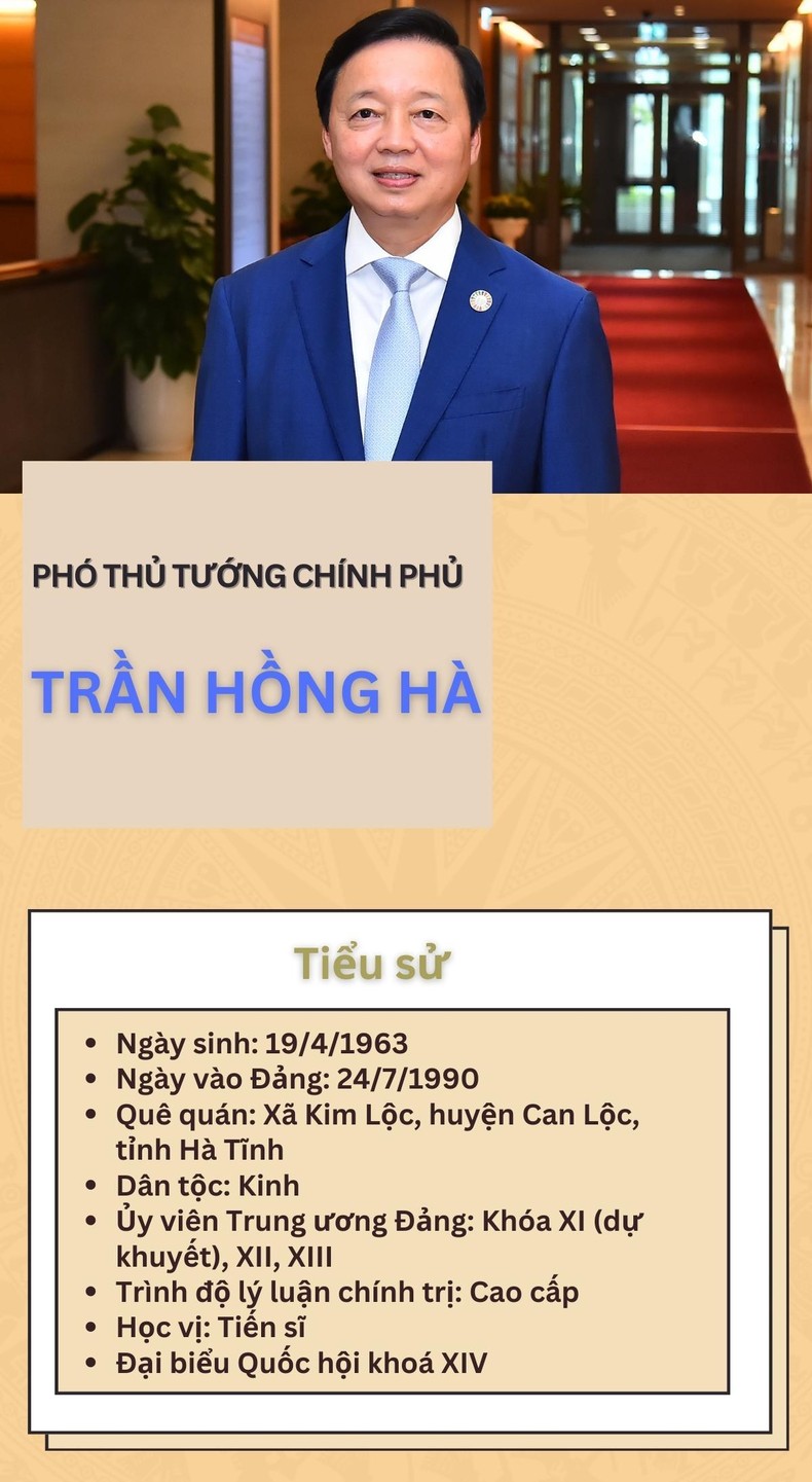 Ngày 5-1-2023, tại Kỳ họp bất thường lần thứ hai, Quốc hội khóa XV đã bầu đồng chí Trần Hồng Hà, Ủy viên Trung ương Đảng, Bộ trưởng Tài nguyên và Môi trường làm Phó Thủ tướng Chính phủ nhiệm kỳ 2021-2026 theo đề nghị của Thủ tướng Chính phủ Phạm Minh Chính.