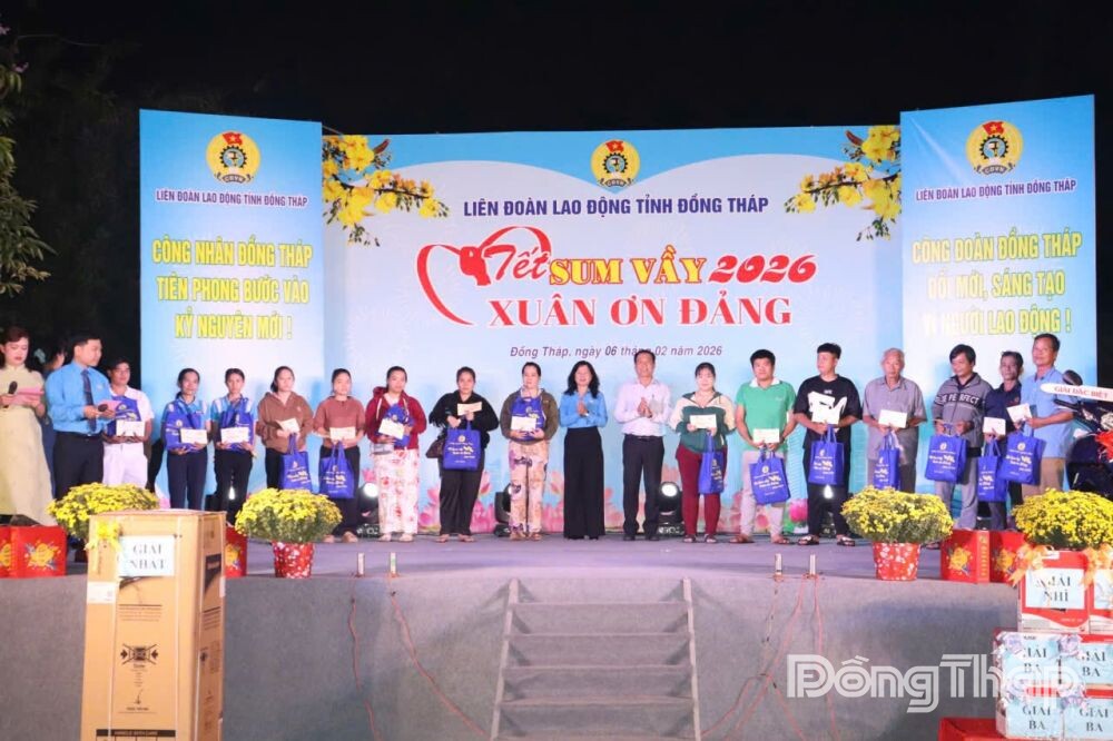 Phát biểu khai mạc chương trình, đồng chí Huỳnh Thị Tuyết Vui, Chủ tịch Liên đoàn Lao động tỉnh Đồng Tháp nhấn mạnh, Chương trình “Tết sum vầy - Xuân ơn Đảng” là hoạt động thường niên có ý nghĩa nhân văn sâu sắc, thể hiện sự quan tâm của Đảng, Nhà nước, tổ chức Công đoàn và cộng đồng doanh nghiệp đối với đoàn viên, người lao động, nhất là những trường hợp có hoàn cảnh khó khăn, góp phần để tất cả đoàn viên, người lao động đều được đón Tết cổ truyền của dân tộc trong không khí đầm ấm, sum vầy.