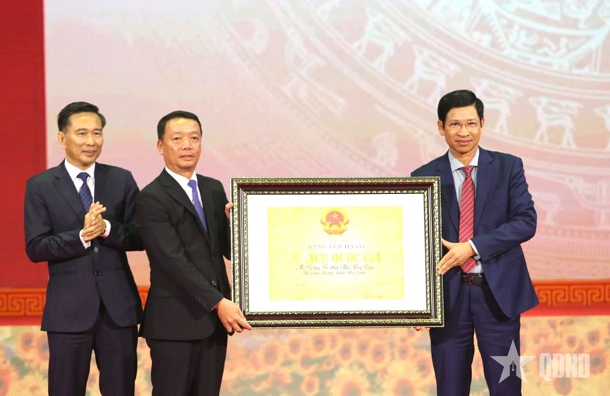 Trong khuôn khổ lễ kỷ niệm, đại diện Bộ Văn hóa-Thể thao và Du lịch đã trao bằng xếp hạng Di tích lịch sử cấp quốc gia đối với Khu mộ Tổng Bí thư Hà Huy Tập.