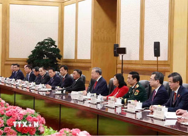 Theo TTXVN, sáng 15-4, sau Lễ đón cấp Nhà nước tại Đại lễ đường Nhân dân ở thủ đô Bắc Kinh (Trung Quốc) theo nghi thức cao nhất dành cho nguyên thủ quốc gia, Tổng Bí thư Ban Chấp hành Trung ương Đảng Cộng sản Việt Nam, Chủ tịch nước Cộng hòa Xã hội Chủ nghĩa Việt Nam Tô Lâm đã hội đàm với Tổng Bí thư Ban Chấp hành Trung ương Đảng Cộng sản Trung Quốc, Chủ tịch nước Cộng hòa Nhân dân Trung Hoa Tập Cận Bình.