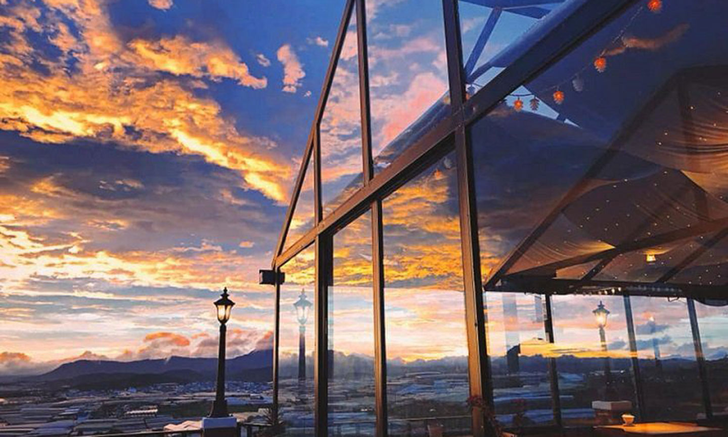 Từ các căn phòng của homestay này, quý khách có thể phóng tầm mắt ra thung lũng rộng lớn bên dưới, khi về đêm các trang trại nông nghiệp lại rực sáng ánh đèn, đón hoàng hôn tại Hai Ả Homestay cũng là một trải nghiệm đáng nhớ.