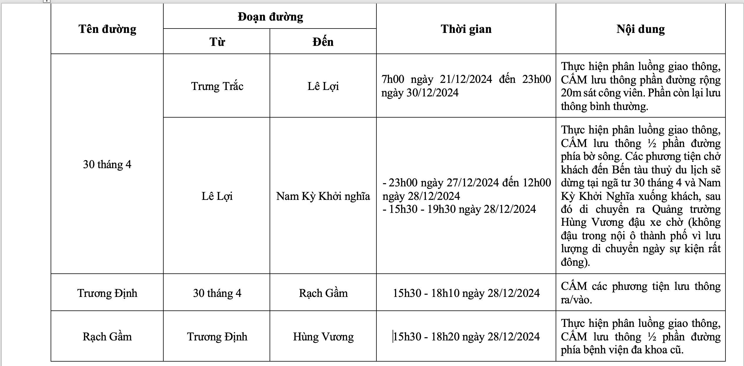 Cụ thể đối với các tuyến đường: