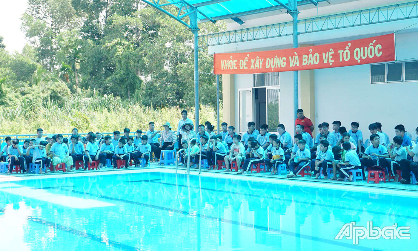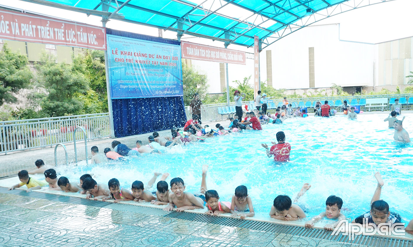 Chương trình do Trung tâm Văn hóa, Thể thao và Du lịch phối hợp Phòng Giáo dục và Đào tạo TP. Mỹ Tho, Trường Khuyết tật Nhân ái (TP. Mỹ Tho) tổ chức thực hiện với sự hỗ trợ chi phí từ Dự án Bơi cho trẻ khuyết tật của Tổ chức AWSOM (Australian Water Safety On The Mekong).