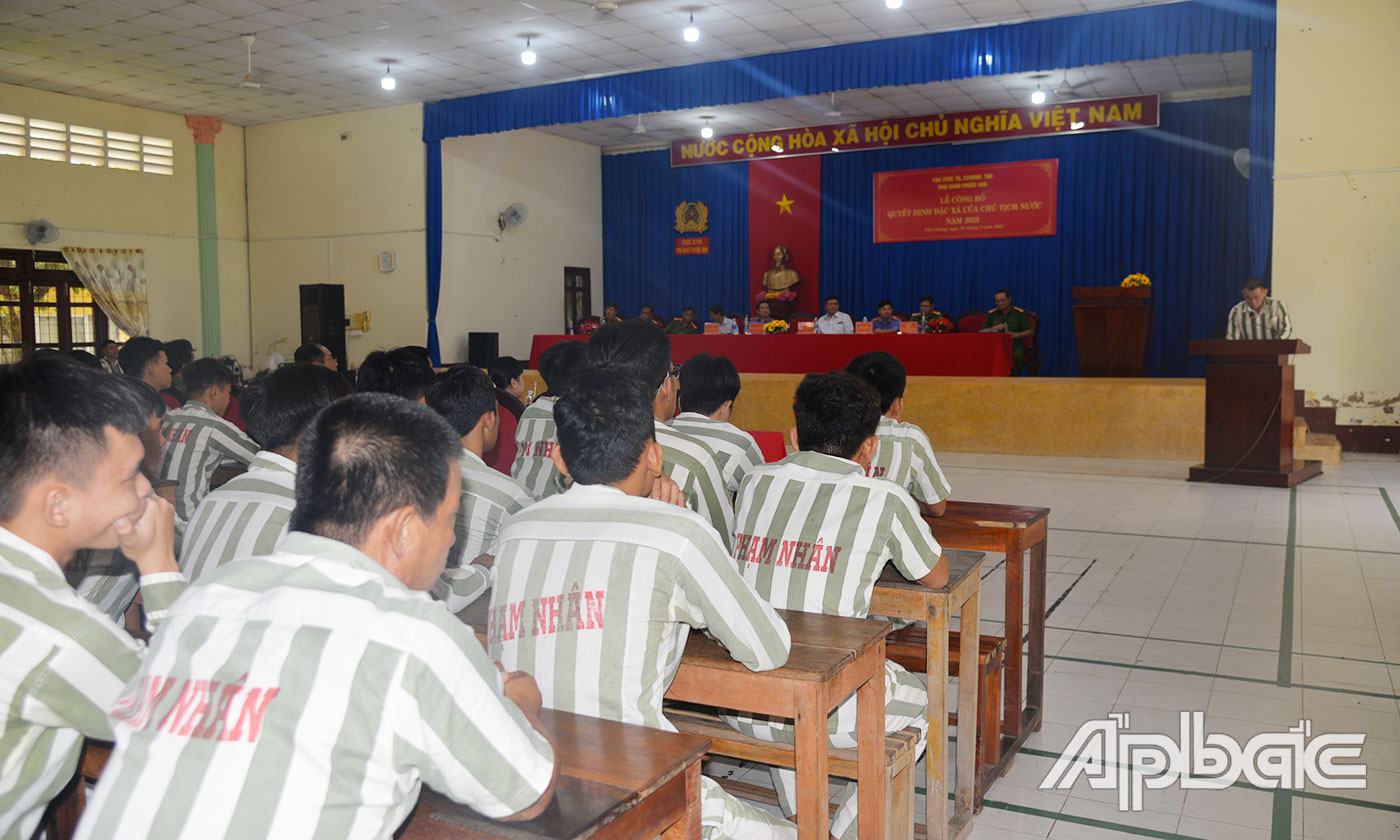 Tham dự có các đồng chí đại diện Viện Kiểm sát nhân dân, Toà án nhân dân tỉnh Tiền Giang, chính quyền địa phương và 200 phạm nhân đang cải tạo tại Trại giam Phước Hòa.