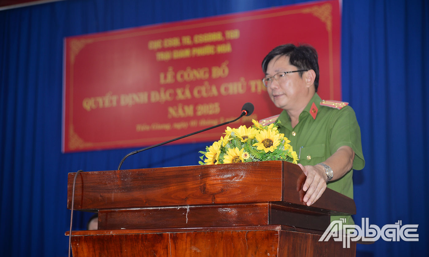 Thượng tá Vũ Văn Phượng, Phó Giám thị Trại giam Phước Hòa biểu dương quá trình học tập, cải tạo của các phạm nhân được đặc xá, mong rằng khi trở về với gia đình, xã hội, các phạm nhân được đặc xá hôm nay sẽ trở thành người có ích cho gia đình, xã hội.