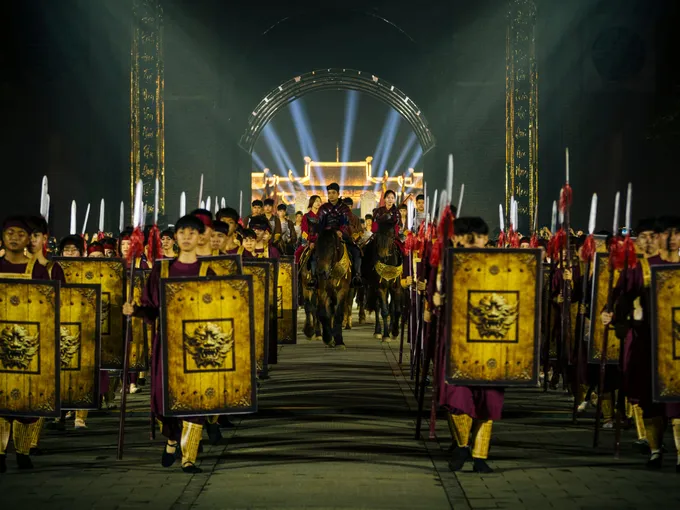 Các đại cảnh qua 4 chương của show thực cảnh: Vạn Cổ Anh Linh, Đại Cồ Việt Khai Quốc, Huyền Thiên Cổ Đàn, Hội Yến Hoa Tiên được dàn dựng công phu cùng các màn đại cảnh rước cờ, múa đại tập trận, lễ đăng quang, hội yến triều đình… tái hiện khí thế hào hùng và thịnh vượng của triều Đinh.
