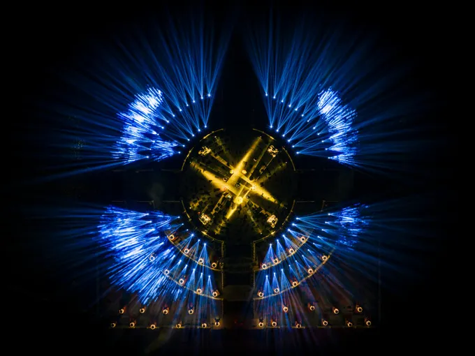 Khán giả lần đầu tiên được trải nghiệm 2 sân khấu trong cùng một đêm diễn, với hệ thống sân khấu tiếp nối. Nếu như sân khấu 1 là bối cảnh của 2 không gian (1 không gian tiền sử trong lòng núi, và 1 bối cảnh tập trận đầy oai phong lẫm liệt của đội quân Hoa Lư xưa với những đại cảnh hoành tráng), thì sân khấu 2 lại dẫn dắt khán giả “nhập vai” vào một nghi lễ lần đầu tiên được tái hiện bằng thực cảnh sống động.