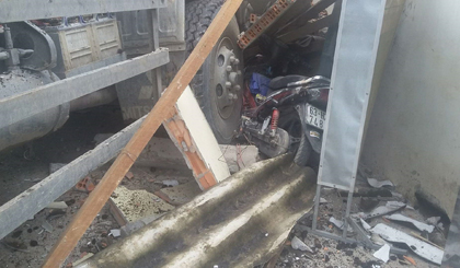 Tránh xe máy, xe tải mất thắng tông vào quầy bán thuốc tây
