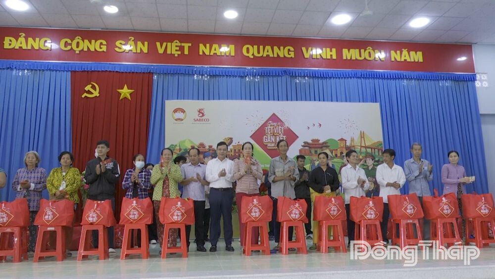 (ĐTO) Sáng 24-1, thông qua sự vận động của Ủy ban Trung ương Mặt trận Tổ quốc Việt Nam, Công ty cổ phần Bia - Rượu - Nước giải khát Sài Gòn (SABECO) tổ chức Chương trình “Chung vị Tết Việt - Gắn kết muôn miền” trao tặng 150 phần quà tết cho hộ nghèo, cận nghèo trên địa bàn xã Tân Thới, tỉnh Đồng Tháp.