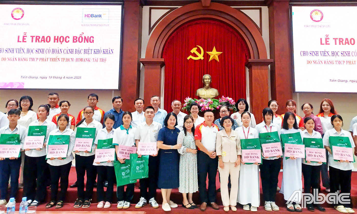 (ABO) Sáng 19-4, Hội Khuyến học tỉnh Tiền Giang tổ chức Lễ trao học bổng năm học 2024 - 2025 cho các em sinh viên, học sinh có hoàn cảnh khó khăn do Ngân hàng TMCP Đầu tư phát triển TP. Hồ Chí Minh (HDBank) tài trợ.