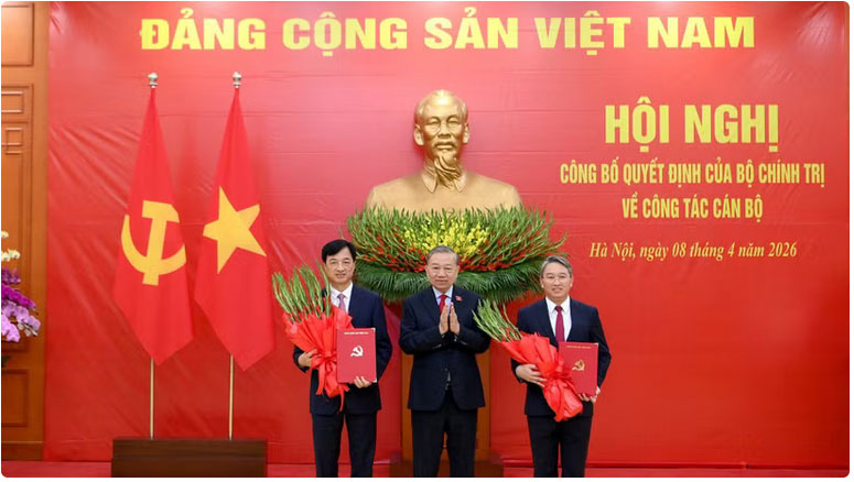 Sáng 8-4, tại Trụ sở Trung ương Đảng, Bộ Chính trị tổ chức Hội nghị công bố quyết định của Bộ Chính trị về công tác cán bộ. Tổng Bí thư, Chủ tịch nước Tô Lâm dự và trao quyết định.