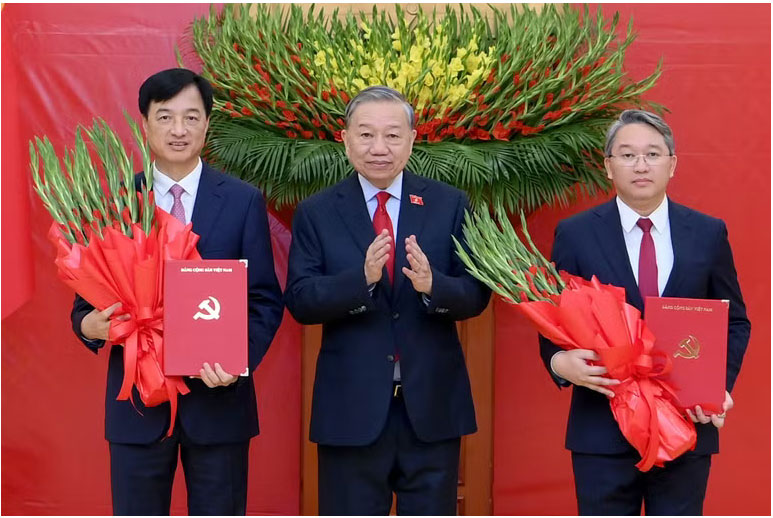 Thay mặt Bộ Chính trị, Ban Bí thư, Tổng Bí thư, Chủ tịch nước Tô Lâm trao quyết định và phát biểu chúc mừng các đồng chí Lê Minh Hưng đã được Quốc hội bầu giữ chức Thủ tướng Chính phủ; đồng chí Phạm Gia Túc được bổ nhiệm giữ chức Phó Thủ tướng Thường trực Chính phủ; đồng chí Nguyễn Duy Ngọc được phân công tham gia Ban Bí thư và bổ nhiệm giữ chức Trưởng Ban Tổ chức Trung ương; đồng chí Nguyễn Hải Ninh được bổ nhiệm giữ chức Chánh Văn phòng Trung ương Đảng.