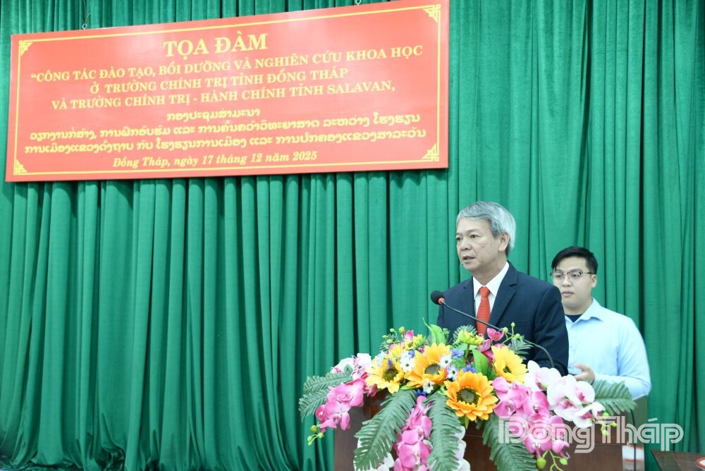 (ĐTO) Sáng 17-12, Trường Chính trị tỉnh Đồng Tháp tổ chức Tọa đàm với chủ đề “Công tác đào tạo, bồi dưỡng và nghiên cứu khoa học ở Trường Chính trị tỉnh Đồng Tháp và Trường Chính trị - Hành chính tỉnh SaLaVan”.