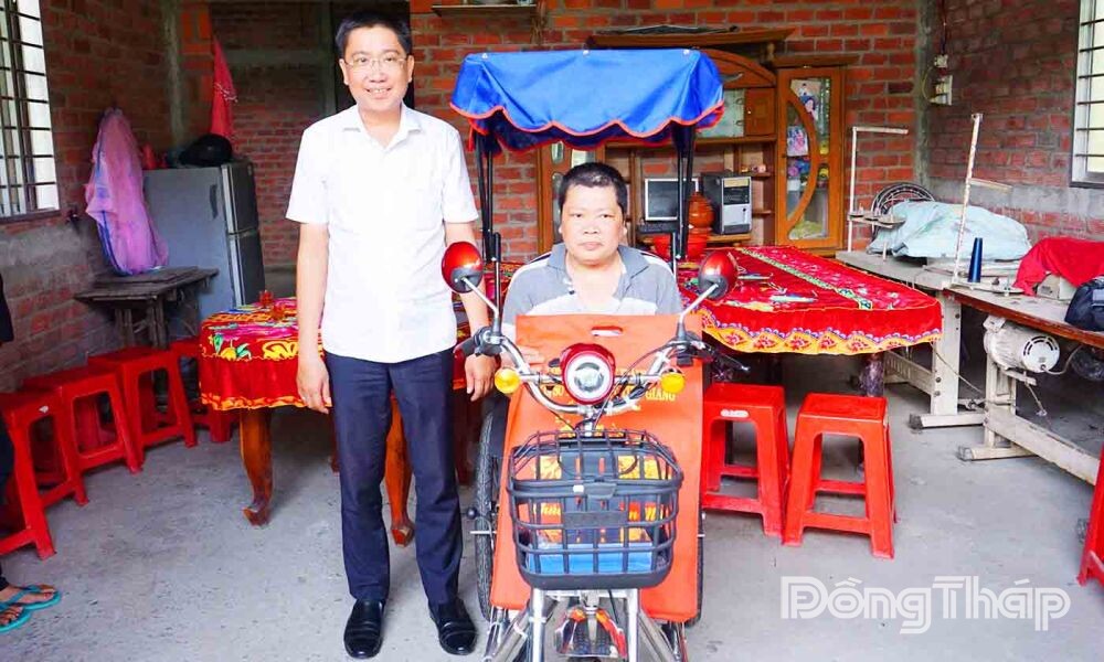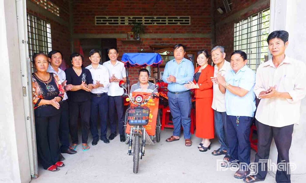 (ĐTO) Thông qua phản ánh trên Báo Đồng Tháp online về hoàn cảnh khó khăn của anh Võ Minh Khuấn, với công việc hằng ngày là bán vé số mưu sinh. Ngày 30-12, Công ty TNHH MTV Xổ số kiến thiết Tiền Giang trao tặng xe lăn điện hỗ trợ anh Khuấn có thể di chuyển dễ dàng, giúp cho sinh hoạt và công việc bán vé số của anh được thuận tiện hơn.
