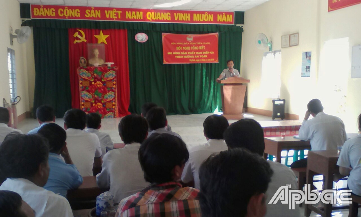(ABO) Đồng chí Đỗ Tấn Hùng, Ủy viên Ban Thường vụ Tỉnh ủy, Chủ tịch Hội Nông dân tỉnh Tiền Giang cùng đại diện Trung tâm Dạy nghề và Hỗ trợ việc làm thuộc Hội Nông dân tỉnh Tiền Giang vừa đến dự tổng kết mô hình trồng rau diếp cá, sản xuất theo hướng an toàn tại xã Nhị Bình, huyện Châu Thành.