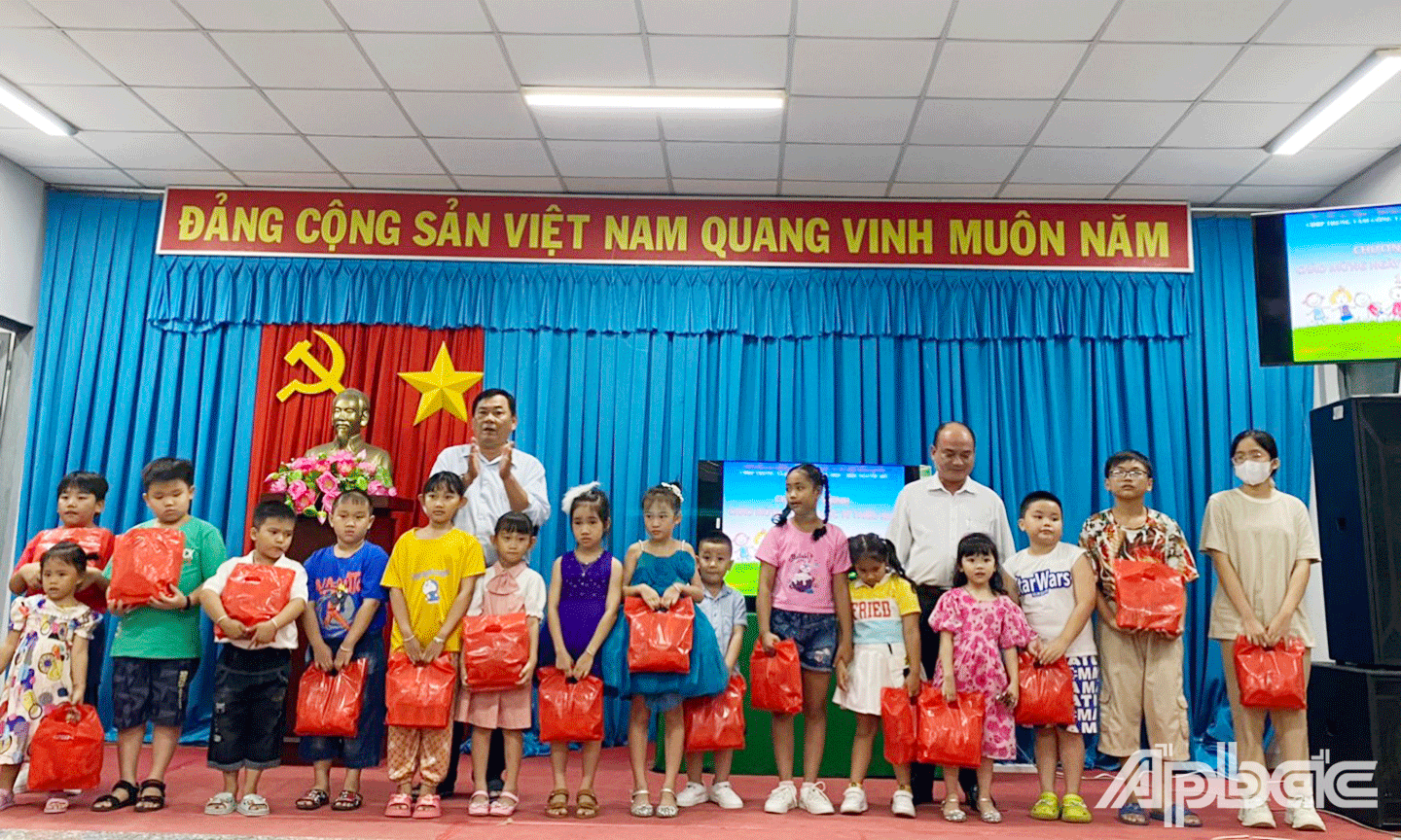 (ABO) Nhân Ngày Quốc tế Thiếu nhi (1-6), Ban Chấp hành Công đoàn Trung tâm Công tác xã hội Tiền Giang (ấp Phong Thuận, xã Tân Mỹ Chánh, TP. Mỹ Tho) phối hợp cùng Đoàn Thanh niên Trung tâm Công tác xã hội - Hội Người mù tỉnh Tiền Giang tổ chức họp mặt Ngày Quốc tế Thiếu nhi 1-6 cho 74 thiếu nhi (16 tuổi trở xuống) là con của viên chức và người lao động thuộc Công đoàn bộ phận Trung tâm Công tác xã hội - Hội người mù và 12 thiếu nhi là trẻ em mất nguồn nuôi dưỡng tại Trung tâm.