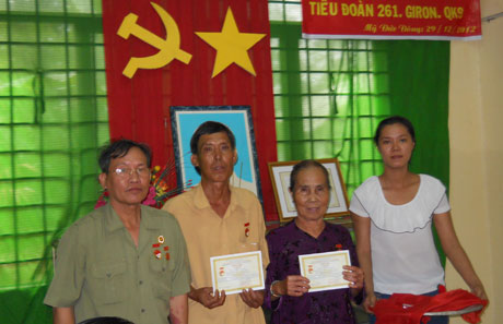 Ban Liên lạc Tiểu đoàn 261 Giron vừa kết hợp với Đảng ủy, UBND xã Mỹ Đức Đông (Cái Bè ) tổ chức Lễ truy tặng Kỷ niệm chương cho 2 liệt sĩ của tiểu đoàn đã anh dũng hy sinh trong cuộc kháng chiến chống Mỹ, cứu nước là liệt sĩ Trần Văn Thắng và Trần Văn Canh (Năm Thuệ ).