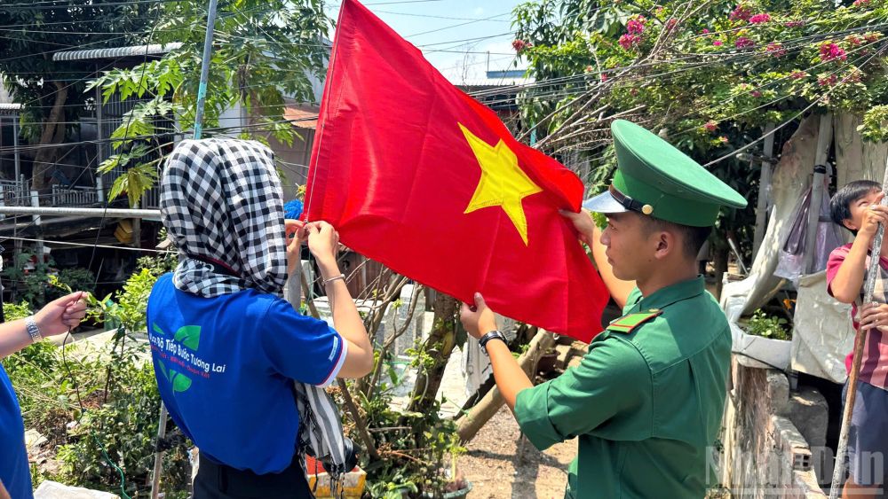 Lực lượng Bộ đội Biên phòng triển khai, phối hợp triển khai các công trình, phần việc thanh niên như: Thực hiện “Tuyến đường cờ”, trao khoảng 200 lá cờ Tổ quốc tặng người dân, góp phần xây dựng cảnh quan khu vực biên giới khang trang, sạch đẹp.