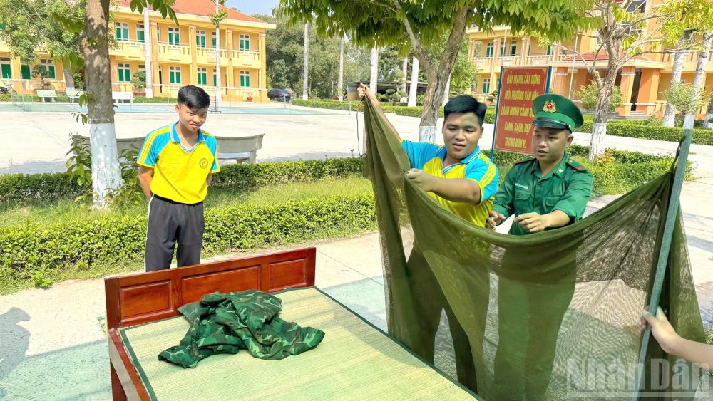 Đặc biệt, mô hình trải nghiệm “Tự hào một ngày được làm chiến sĩ Biên phòng” đã thu hút nhiều học sinh tham gia với những nội dung phong phú như: Tìm hiểu về cột mốc biên giới, xem phim truyền thống, trải nghiệm sinh hoạt quân ngũ và giao lưu văn nghệ.