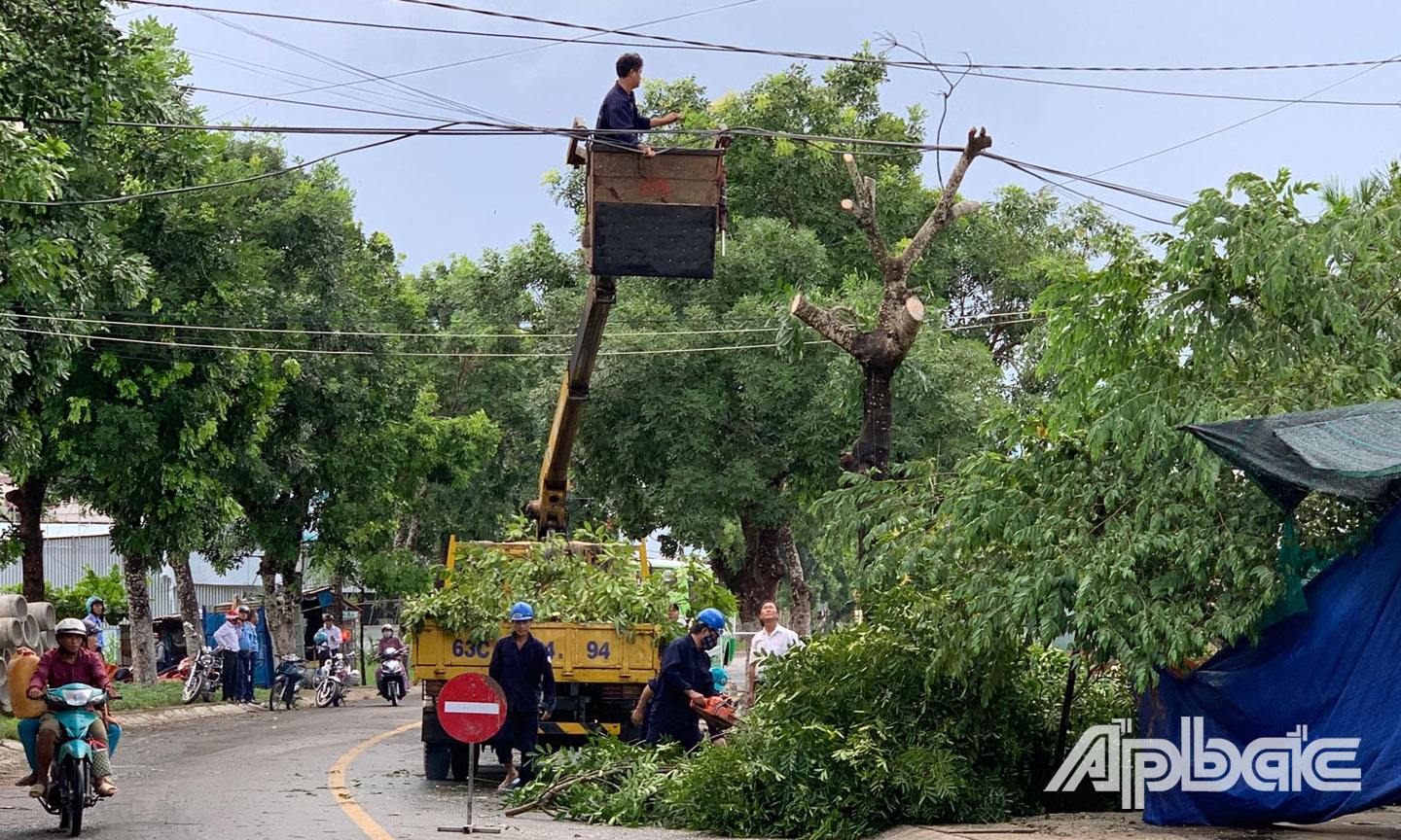 | Cây xanh ngã đè đường dây điện. |