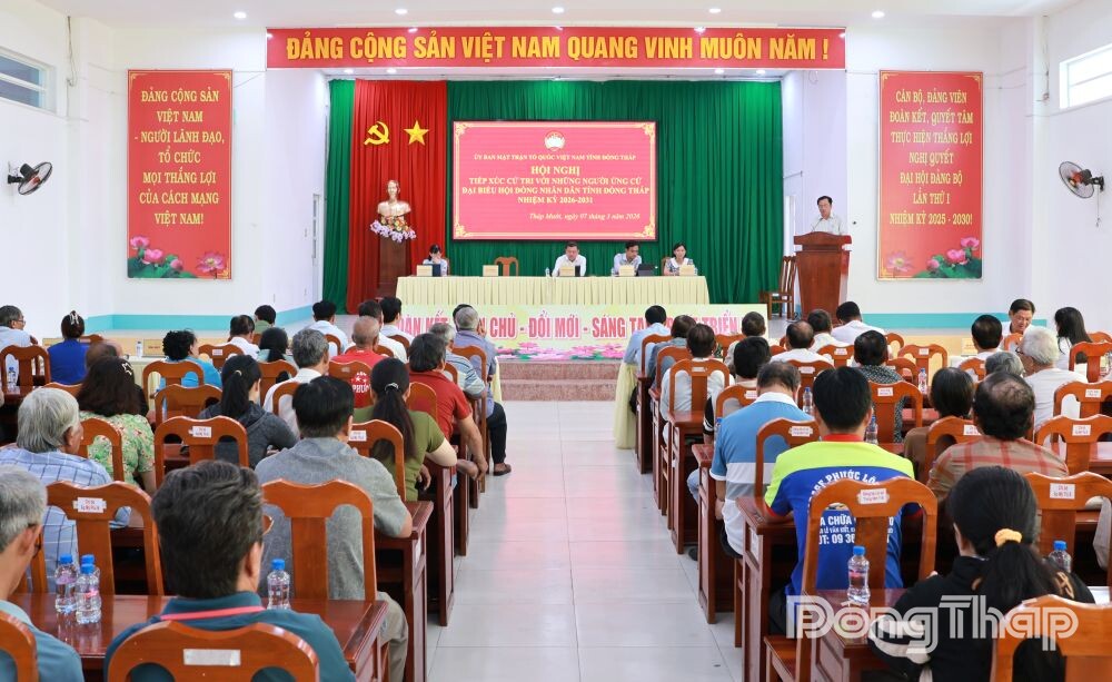 Tại Hội nghị, cử tri được giới thiệu tiểu sử tóm tắt của những người ứng cử đại biểu HĐND tỉnh, nhiệm kỳ 2026 - 2031 thuộc Đơn vị bầu cử số 9, gồm các đồng chí: Trần Văn Lập, Ủy viên Ban Thường vụ Đảng ủy, Phó Chủ tịch HĐND xã Tháp Mười; Lê Thị Trúc Linh, Phó Chủ tịch Ủy ban MTTQ Việt Nam đồng thời là Chủ tịch Hội Liên hiệp Phụ nữ xã Đốc Binh Kiều; Nguyễn Văn Vũ Minh, Tỉnh ủy viên, Giám đốc Sở Nội vụ tỉnh; Nguyễn Thị Hồng Thắm, Phó Trưởng phòng Tài chính Kế toán, Công ty Điện lực Đồng Tháp; Phan Văn Thương, Ủy viên Ban Thường vụ Tỉnh ủy, Trưởng Ban Nội chính Tỉnh ủy Đồng Tháp.